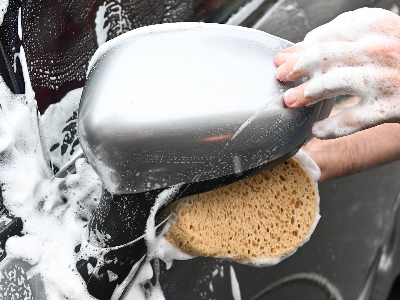 Umfassende Fahrzeugwäsche inklusive Lack, Felgen, Türleisten, Scheiben, Spiegel und schwer zugänglicher Stellen, mit sorgfältigster Entfernung von hartnäckigem Schmutz, Insektenresten und Ablagerungen.